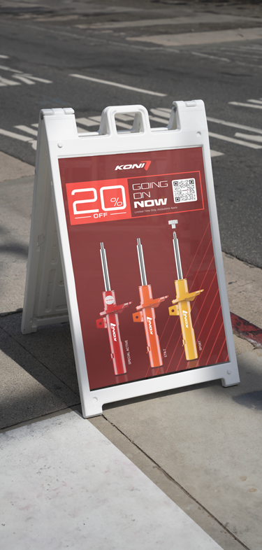 Working side by side in the fast-paced automotive aftermarket industry, we support the KONI brand with comprehensive services. From brand development to enthusiast activation, on-site support, environmental graphics, and more, our dedication ensures KONI remains a leader in the market.