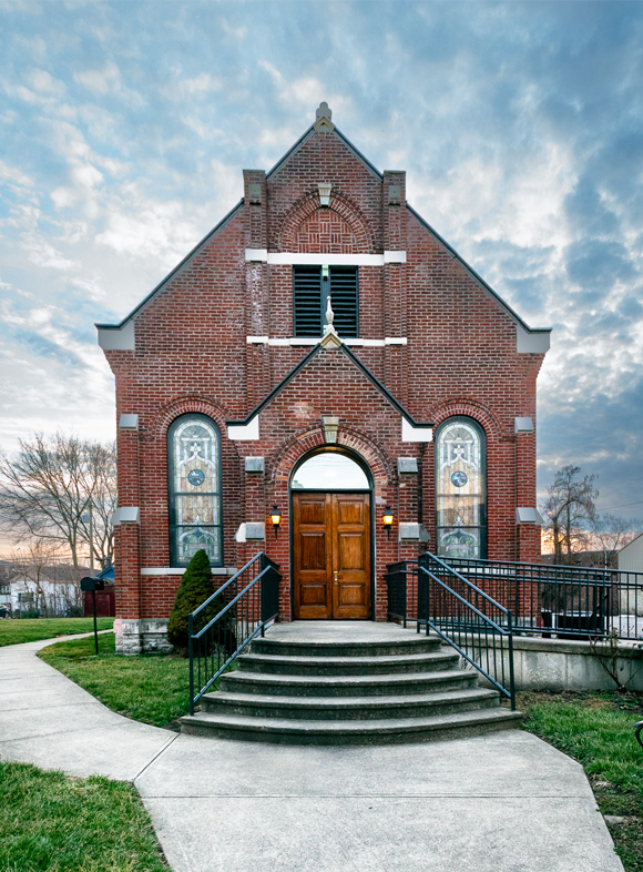 This charming building features numerous arched, stained-glass windows and a full organ which is also surrounded by arched woodwork. Since the archway shape is so pronounced in the space it made sense to utilize it in the brand.